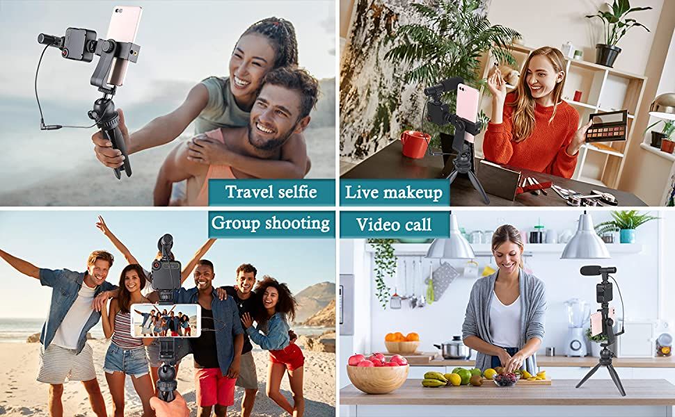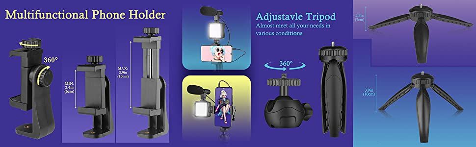 A Microphone for Phones with W49S LED Light, Phone Holder & Mini Tripod as a Vlogging Kit. A prefect set of YouTube Equipment for iPhone, Samsung DSLR Camera, Smartphone and etc. The essential Video Kit for vlogging, YouTube video filming, interviewing, podcasting,etc